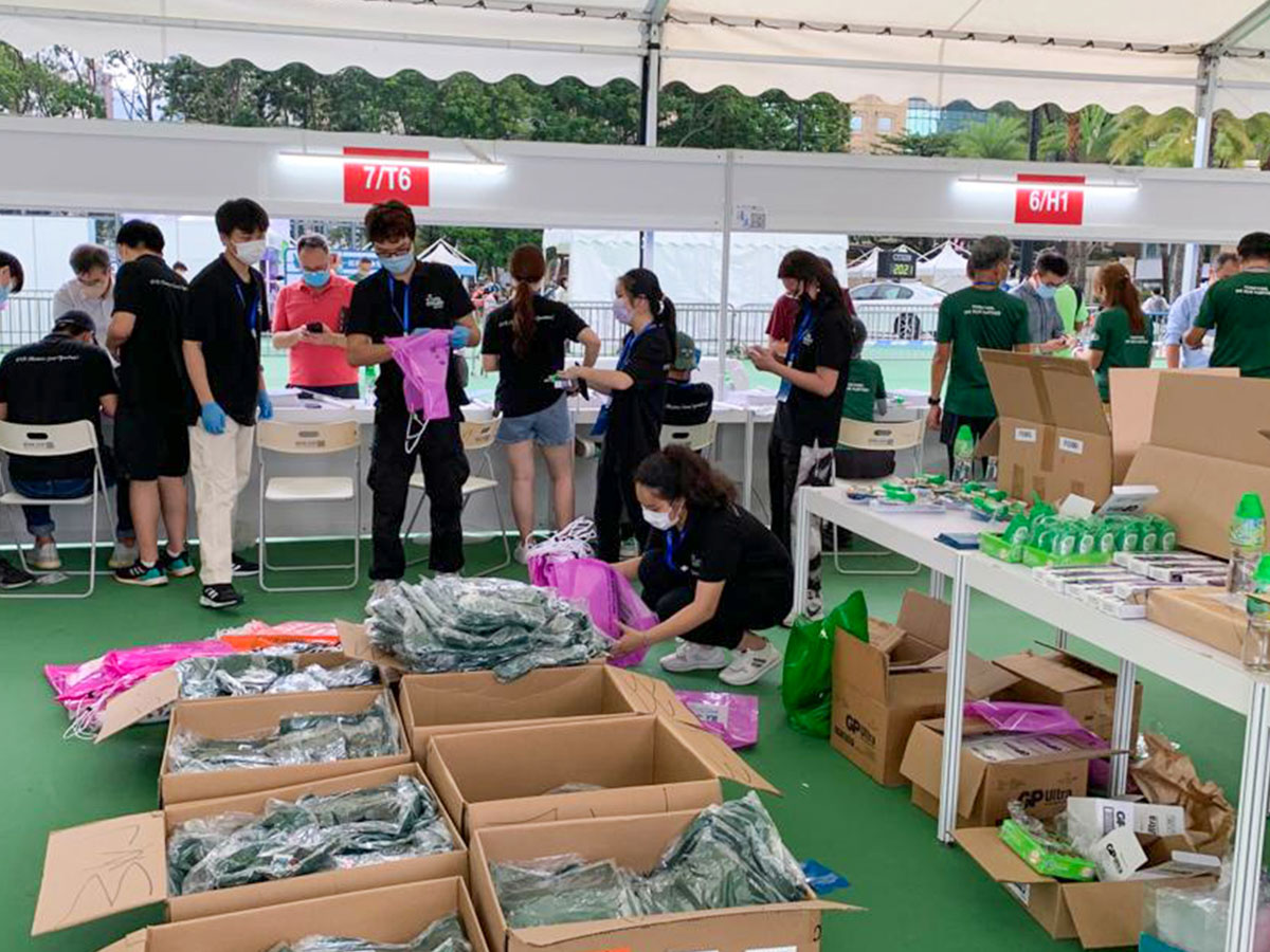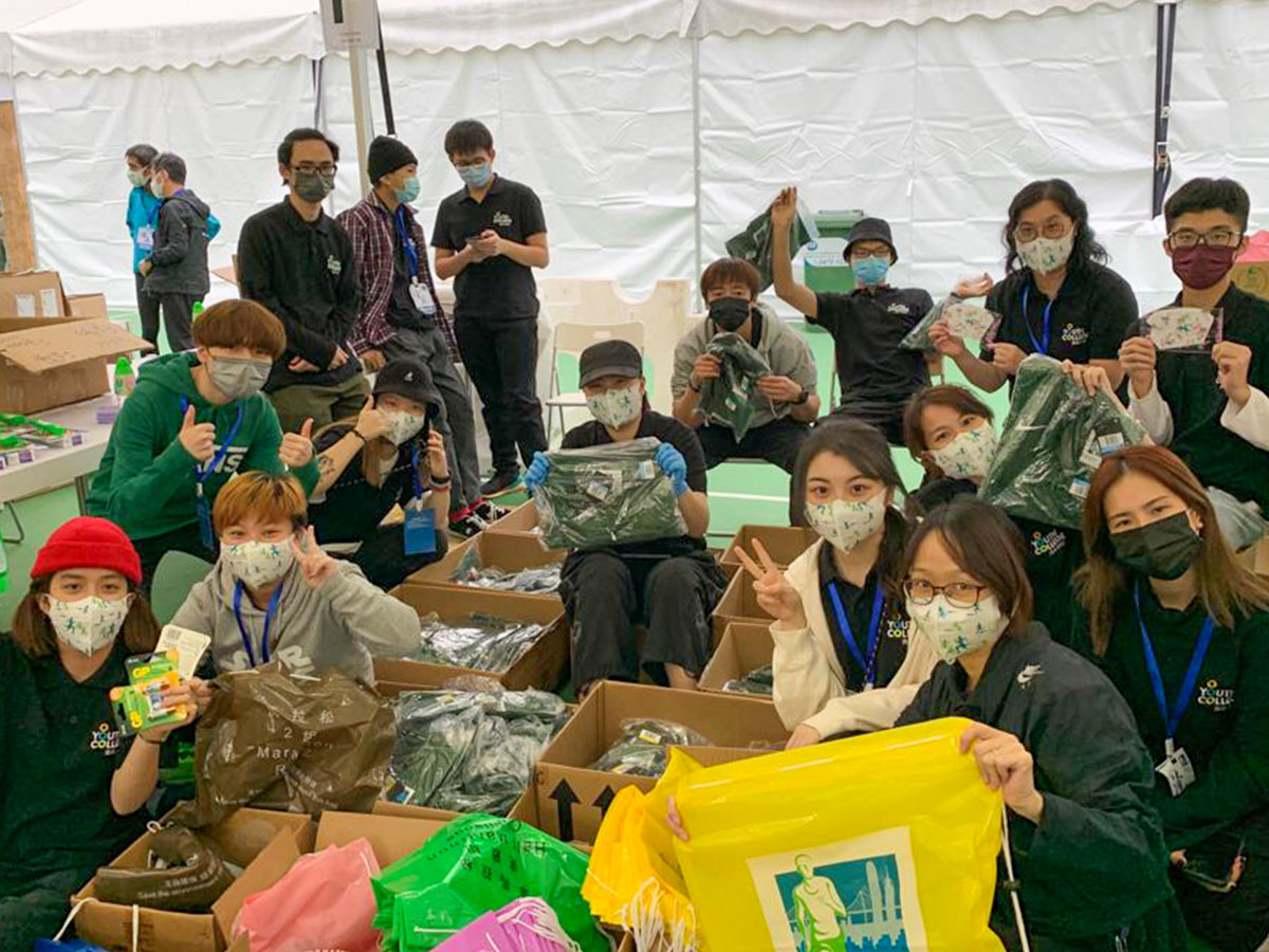 The students of the Business Event Operations course joined the Standard Chartered Hong Kong Marathon, in which they distributed runner bags and helped with luggage deposit.