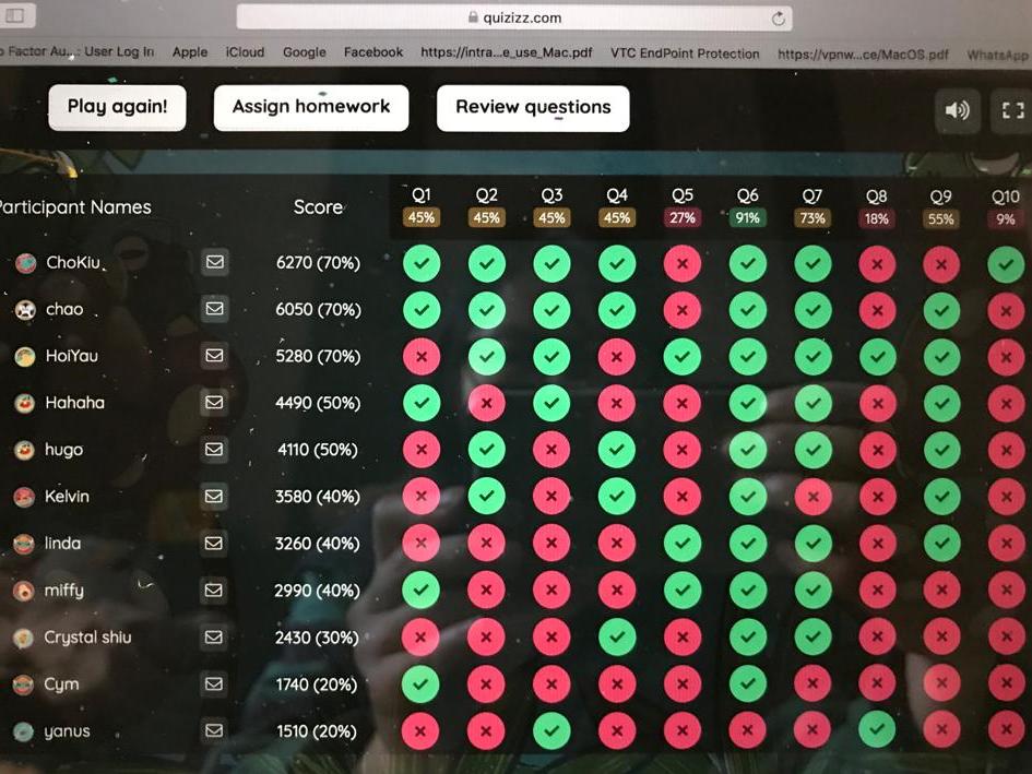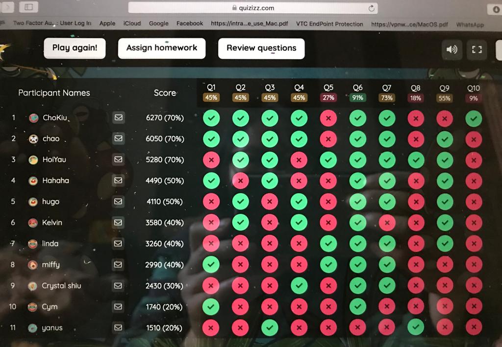 Students played competitive riddle-guessing games online through MS TEAMS and QUIZIZZ.