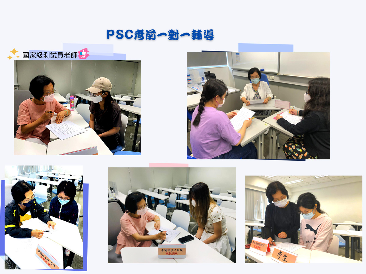 For students preparing for the 18th Putonghua Shuiping Ceshi (PSC) hosted by the VTC, national examiners offered one-on-one tutoring to correct students’ pronunciations and share examination techniques. This increases students’ Standard Chinese proficiency and their examination skills, thereby increasing their confidence and fully preparing them for the examination.