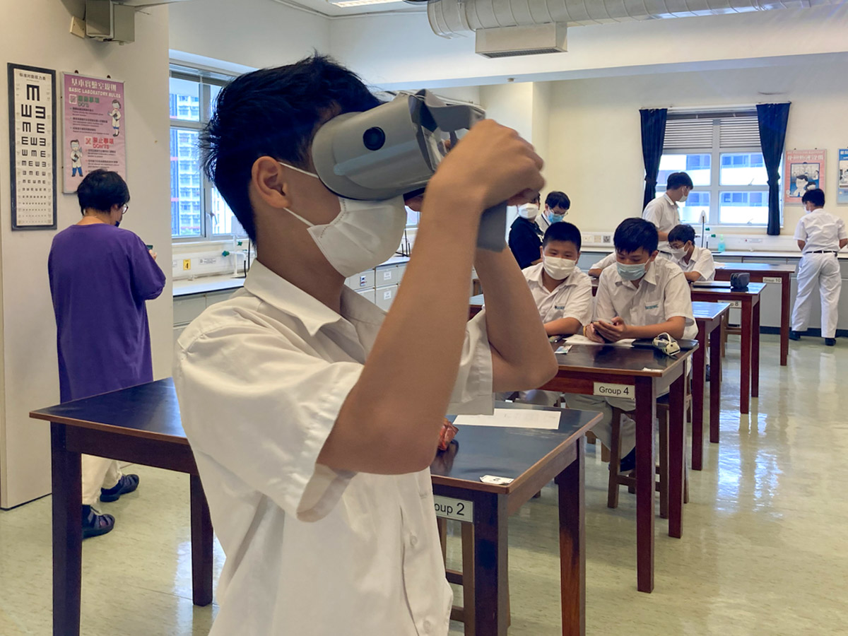An on-site IT taster programme was arranged at Queen Elizabeth School Old Students' Association Tong Kwok Wah Secondary School. Students were given the opportunity to learn about VR (Virtual Reality) production, create and view the 360° panoramas through VR headsets and mobile devices under the guidance of the teachers from YC(TSW).