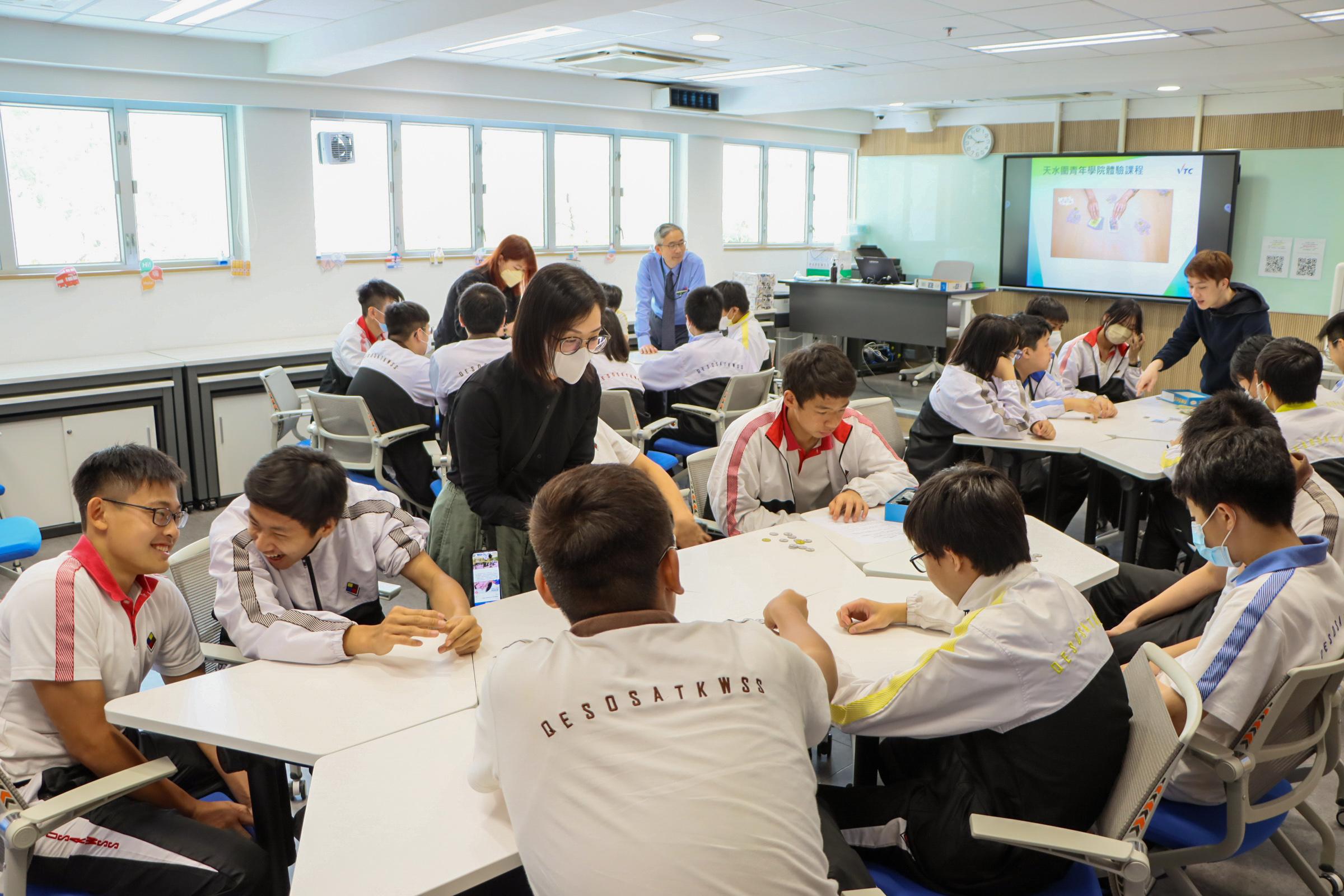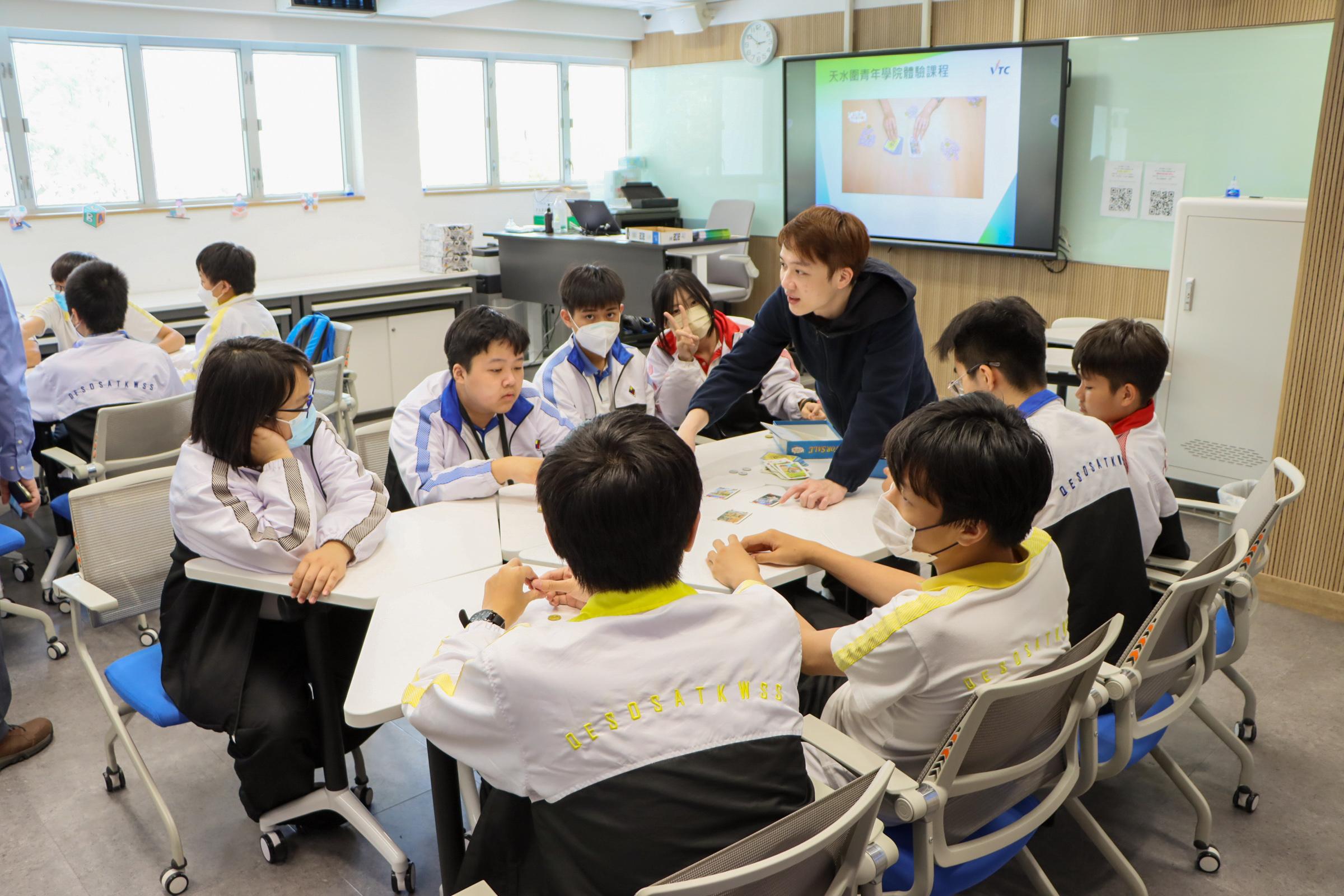 15 Mar 2023 Tin Shui Wai Secondary school students participated in a Diploma of Vocational Education (Business) taster programme and played a boardgame for real estate experience.