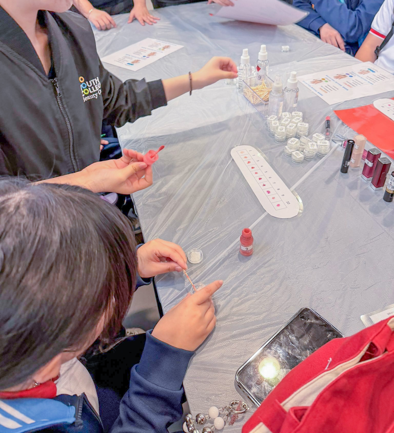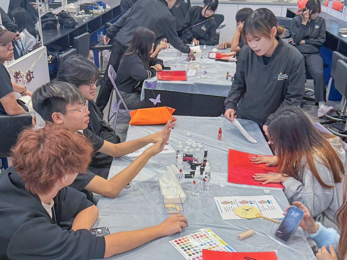 Students from the Beauty Care Programme at Youth College (Tuen Mun) showcased three experiential activities: “Lip Balm Making Workshop,” “Master the Art of Nails: Skill & Style Workshop,” and “Create Your Own Botanical Skincare Gel Workshop” during the school Information Day.