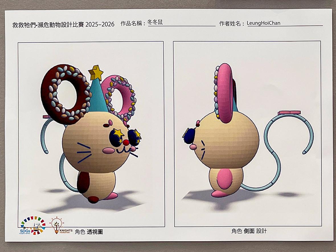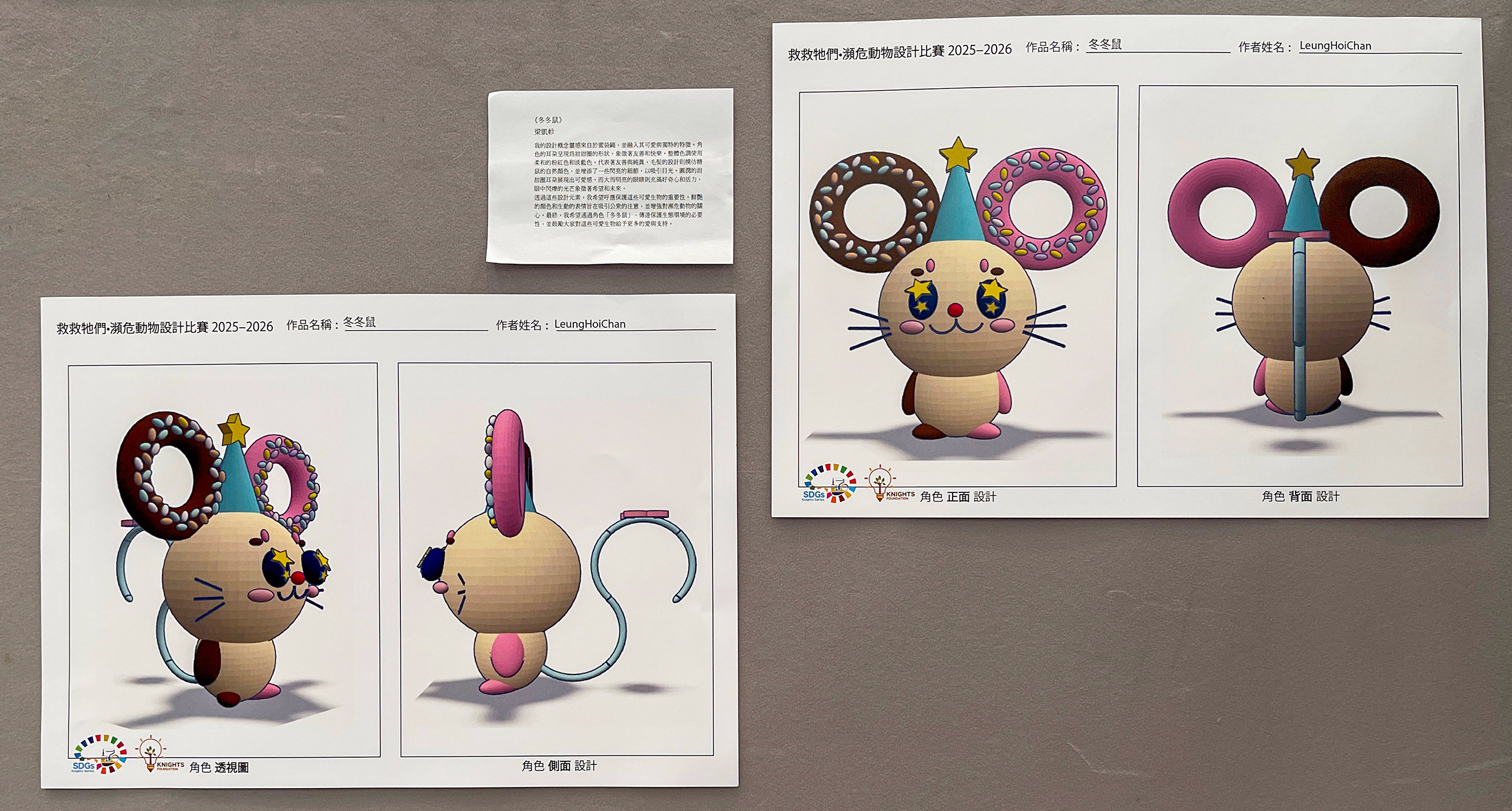 Students from the DFS (Design) Diploma of Foundation Studies (Design) program at Youth College (Tuen Mun) participated in the “Save Them • Endangered Animals Design Competition 2025–2026”, organized by the Knights Nurturing Foundation and co-organized by the Lions Club of Hong Kong IFC. Out of nearly one hundred entries, our students stood out with their creativity and talent, achieving remarkable success!