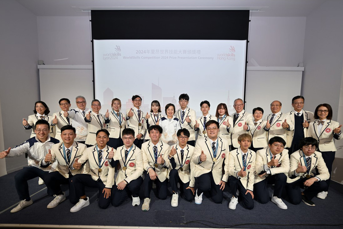 Dr CHOI Yuk-lin visited Lyon in person to cheer on the Hong Kong delegation, and presented awards to the winners. Dr Choi highly praised the team for their excellent performance in the Competition, noting that they have won the highest number of awards and achieved the best ever results since Hong Kong first participated in the WorldSkills Competition in 1997. She also commended Hong Kong competitors for showcasing their best performance and fully demonstrating the talent and perseverance of Hong Kong youth in the international arena.