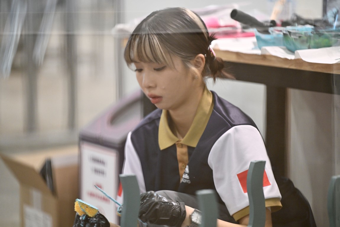 CHAN Wing-ki, a graduate of Higher Diploma in Design for Event, Exhibition and Performance at Hong Kong Design Institute (HKDI), a member institution of Vocational Training Council (VTC), won the Gold Medal in the Visual Merchandising trade and was named the top scorer of Hong Kong Team. This is also the second consecutive gold medal for the Hong Kong team in this competition trade. CHAN was thrilled and surprised when the result was announced, expressing her gratitude for the unwavering support and guidance of the expert who had spent days and nights helping to hone her skills. CHAN said she was excited that her hard work and dedication had finally paid off, adding that WorldSkills Competition participants were expected to reach the skills levels of professionals. Joining the competition had helped her sharpen her technical competencies and enabled her to gain insights into the latest industry developments, which would in turn open up more career opportunities. She noted that her time management and problem-solving skills had also improved and most importantly, the competition has strengthened her ability to remain calm and clear-headed under pressure, which helped her win the medal.