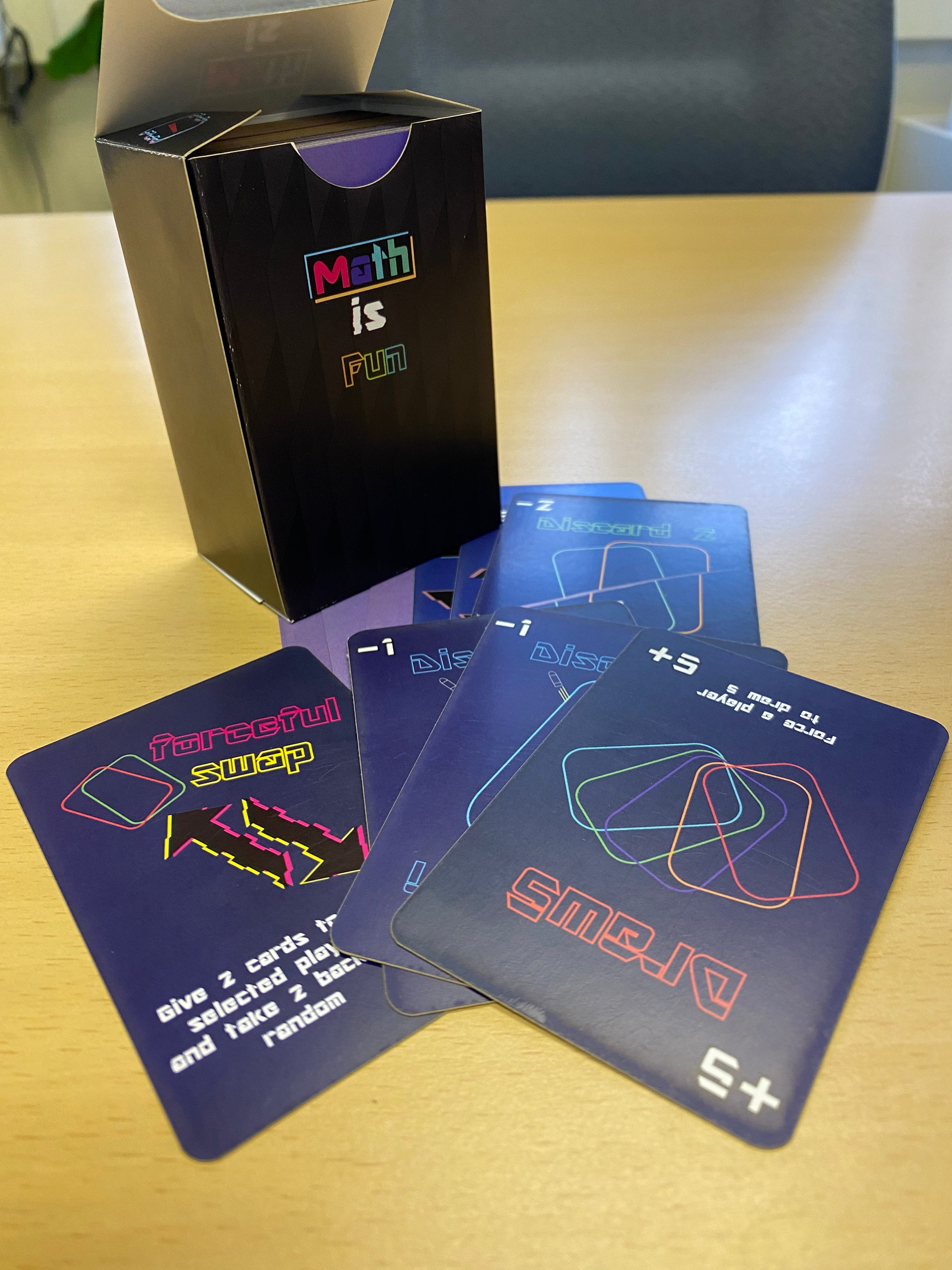 学生一般都不太投入传统数学教育,青年学院学生明白到游戏学习的优势,展开了一个独特的跨学科合作专题习作,希望通过印刷纸牌游戏和电子卡牌游戏来学习数学概念。职专文凭(电子与电脑工程) 课程的学生设计了电子卡牌游戏,而职专文凭(设计与印刷媒体) 课程的学生则设计了印刷纸牌游戏。这些卡牌游戏帮助玩家培养解决问题的能力,而不仅仅是背诵数学公式。