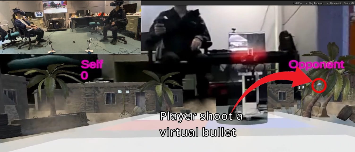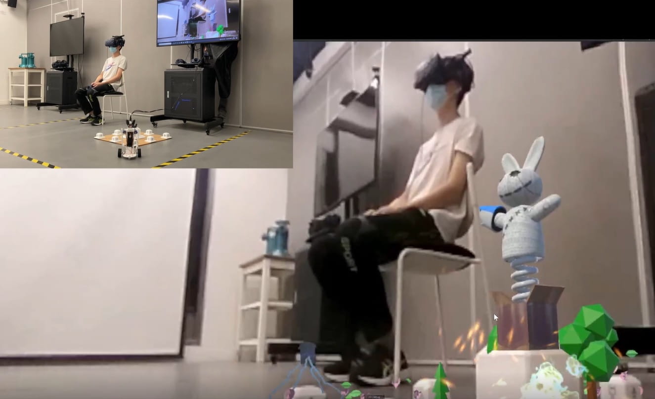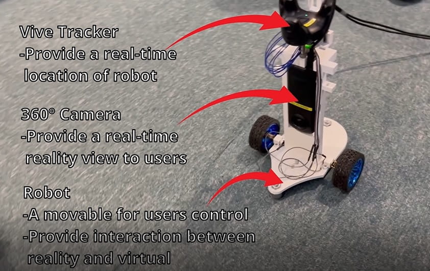 该平台运用VIVE Pro 和 Unity 建立,并且结合了激光引导追踪器,以获取实物的精确位置,使玩家能够获得身临其境的 MR 体验。玩家可以遥控感应器作为人类模拟进行与实体世界的互动,而安装在感应器上的 360°摄影机提供了第一身的视觉。此外,该平台还可以通过网络连接,将两个以上的玩家连接到同一个虚拟世界。