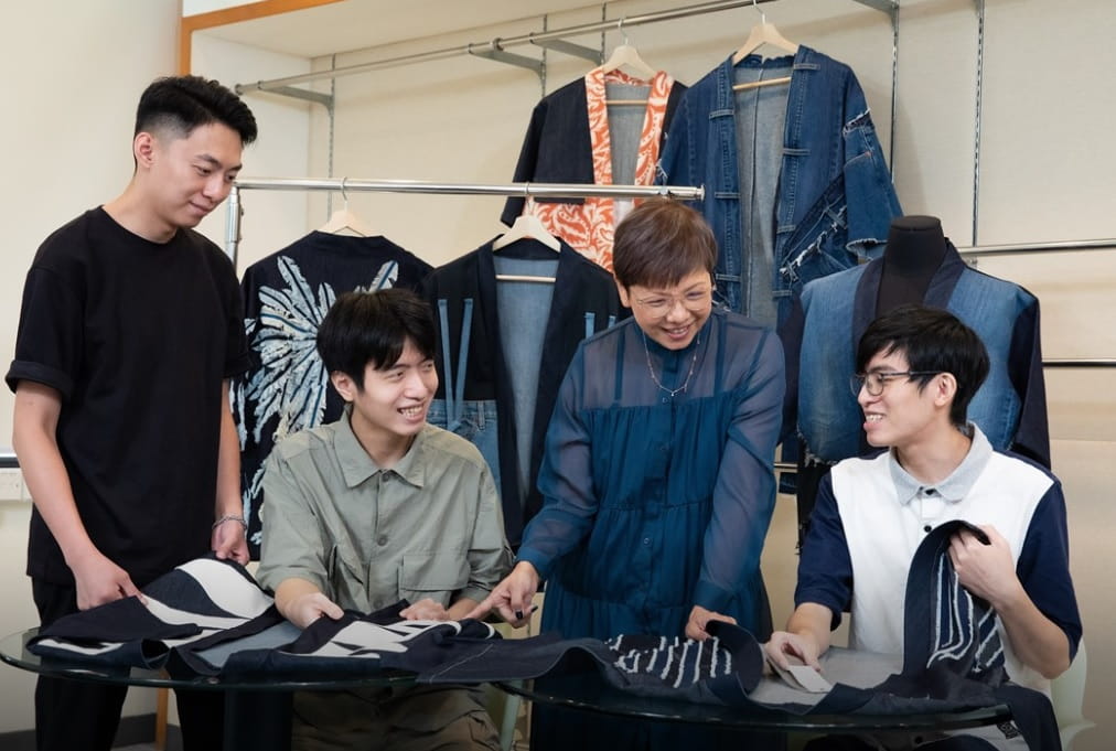职专文凭(时装)学生利用从救世军和时装业界收集得来的閒置布料,升级再造成时尚摩登的和风牛仔外套;