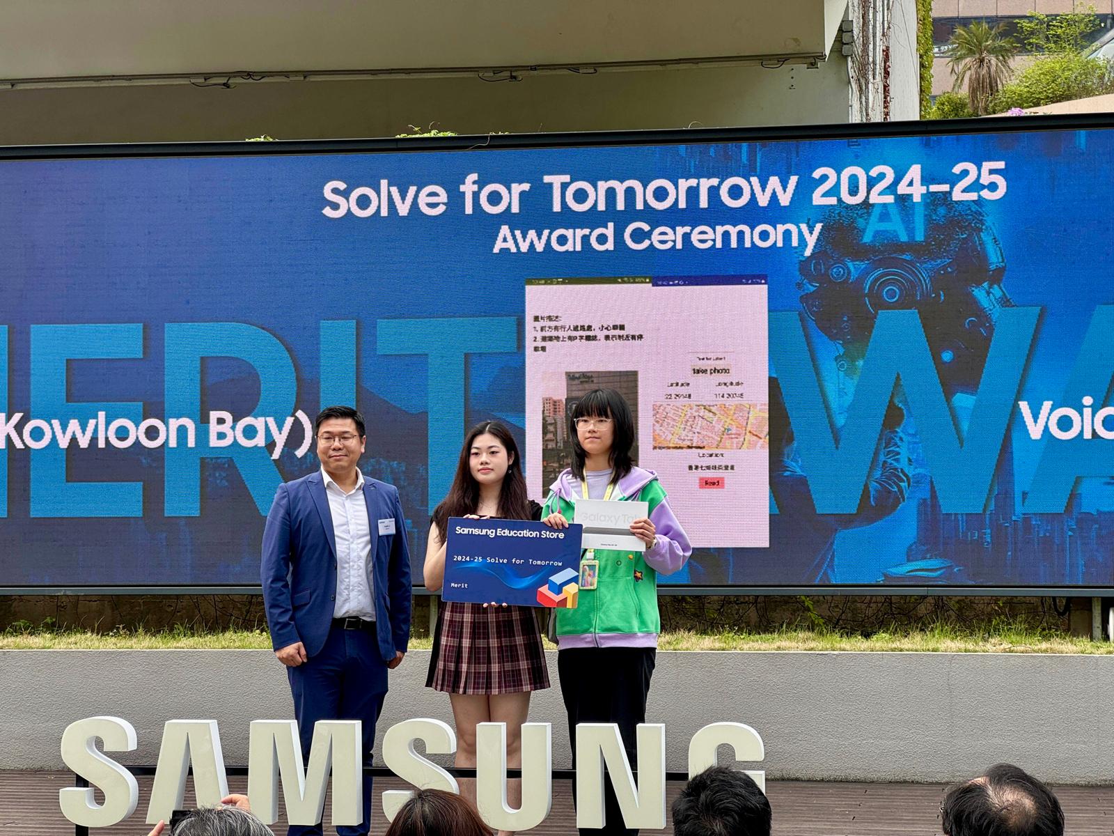 2025年04月13日 九龍灣 職專文憑 (人工智能及機械人學)學生林鑫和林銥淳憑作品「隨聲出行‧生活助手」於三星集團主辦之科技比賽 “Solve for Tomorrow 2024-25” 榮獲「大專組優異獎」。 「隨聲出行‧生活助手」是集導航及文字識別功能於一身 - 透過AI圖像識別和語音提示,為視障人士識別四周障礙物,並同時朗讀出實時位置信息,幫助他們安全獨立出行 。