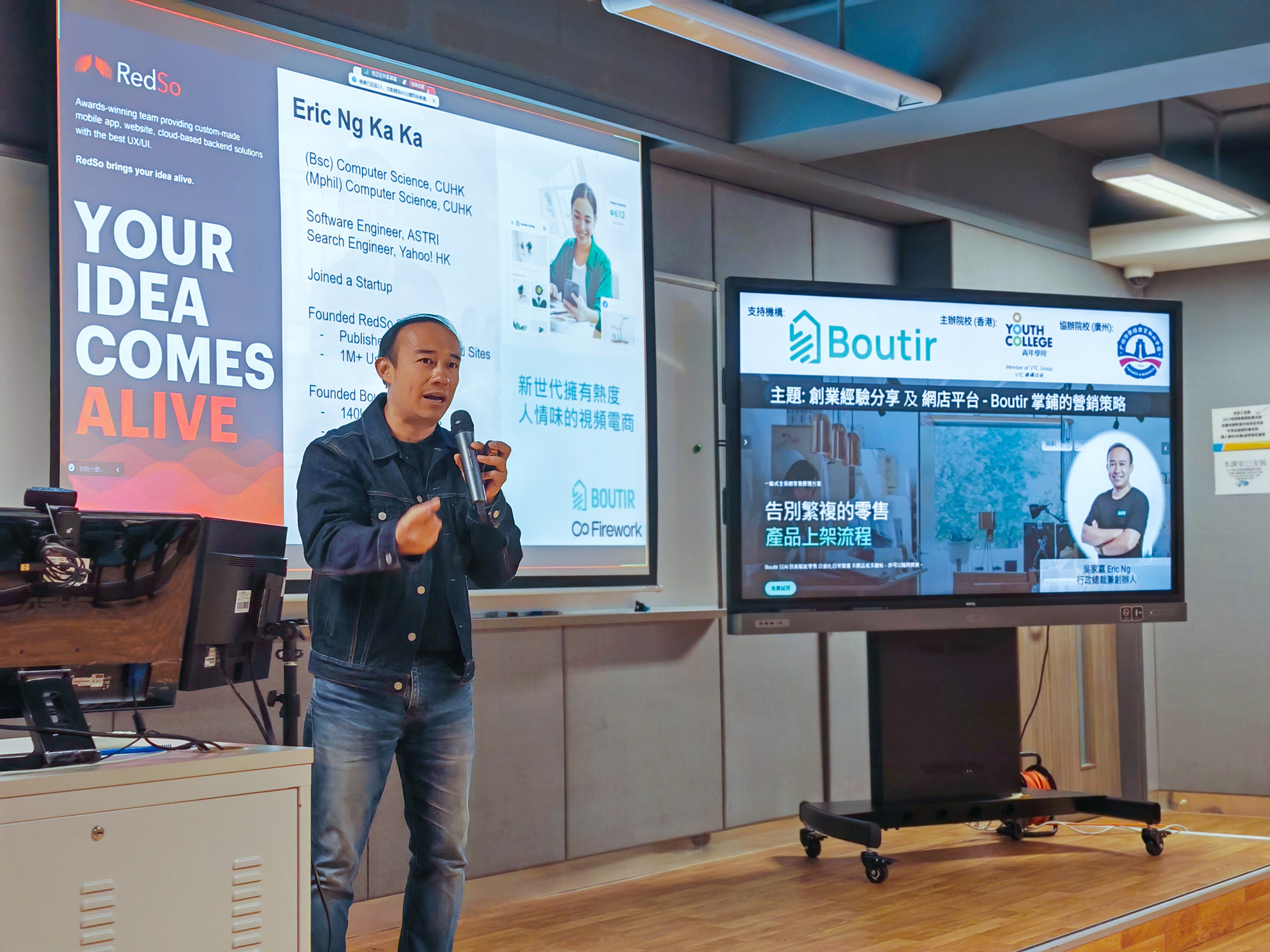 Organized by the Diploma of Vocational Education (Business) and (Business Event and Marketing) teams, and co-organized by the Guangzhou Vocational School of Finance and Business, the "Sharing of Entrepreneurship and Marketing Strategy of Online Store Platforms – Boutir" was successfully conducted at Youth College (Kwai Fong) on February 12, 2025.