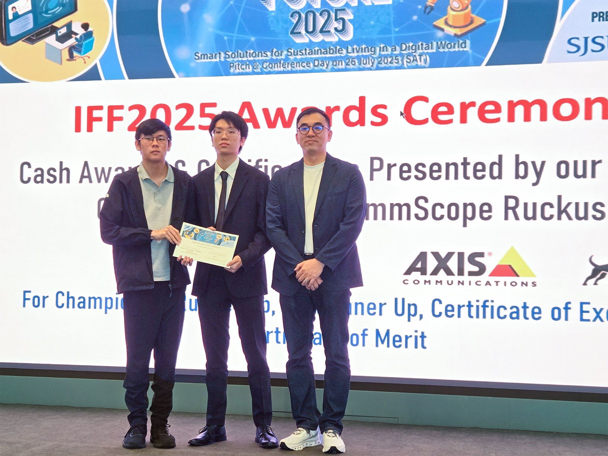 “Smart Escalator Safety System”, the entry by student Tao Ernie and CHAN Yat Fung from Diploma of Vocational Education (Electronic and Computer Engineering) of Youth College (Kowloon Bay) was awarded the "Certificate of Excellence" in the Tertiary Group of the Innovate for Future (IFF) Competition 2025.