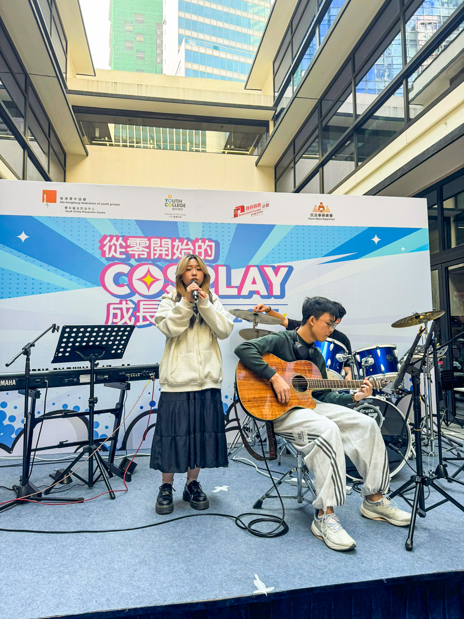 Youth College (Yeo Chei Man), in collaboration with the HKFYG Youth Crime Prevention Centre (YCPC) and the Sai Kung and Wong Tai Sin Outreach Social Work Teams, received funding from the Home Affairs Department's 2025-26 Sai Kung District Youth Development Programme. From September to November 2025, they jointly organized the "Cosplay Growth Programme." Throughout the programme, 11 participants engaged in a series of workshops, including props and wig making, social media operations, Cosplay stage photography, and performance techniques. To allow the public to gain a deeper understanding of the students' achievements, a results exhibition was held on 23 November 2025 at the Oasis, G/F, Central Market. The programme involved students from the following Diploma of Vocational Education (DVE) programmes: DVE (Music and Media Production), DVE (Image Design), DVE (AI and Information Technology), DVE (Beauty Care), DVE (Fitness and Sports Studies), and DVE (Hairdressing).