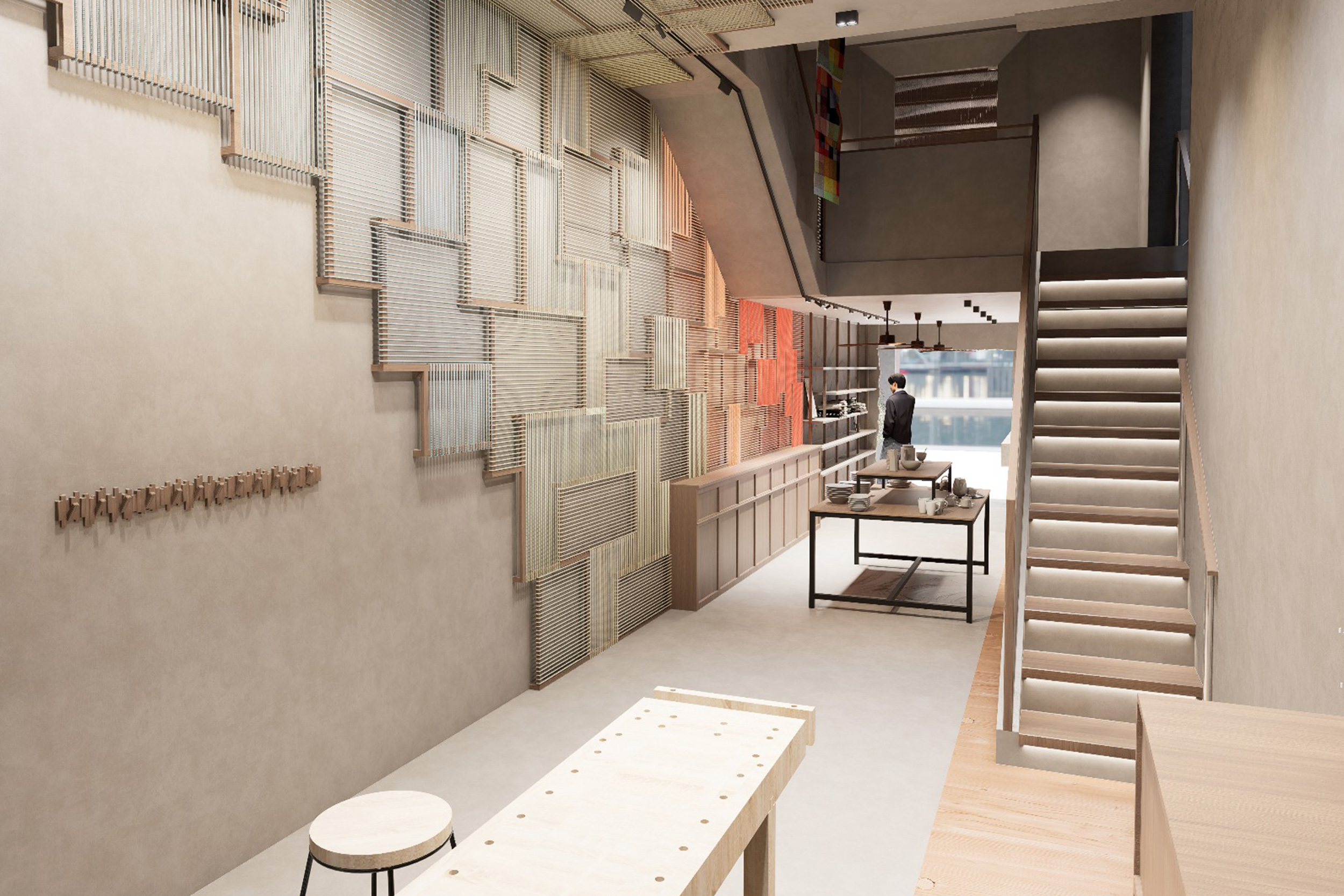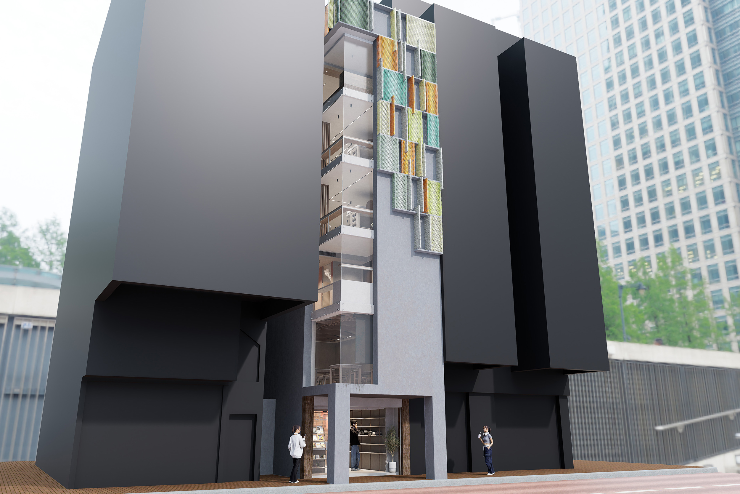 林遨然及施灝怡分享:「此專案選址於深水埗,以『編織』為設計理念,象徵無家者與社區之間的修補與連結。這座多用途無家者宿舍為露宿者帶來一個舒適而溫暖的社區中心,為無家者提供社區活動空間與住宿。以回收和翻新為核心理念,地面層設有維修工作室,為無家者提供工作機會與技能培訓,協助他們重新融入社會。這座可持續發展的中心不僅推動環保,更促進社區共融,同時為無家者賦予新生。」